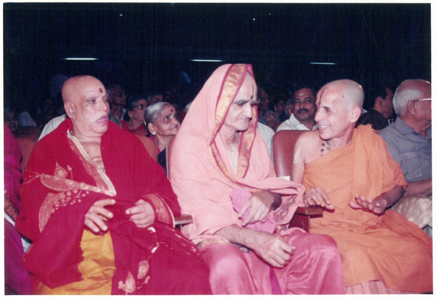 Satya Pramodha Theertharu was the 41st pontiff of the Uttaradhi Mutt after Acharya Madhwa. Sri S V Narayanaswamy Rao had great respect to his holiness. In 1970’s Sri S V Narayanaswamy Rao met His Holiness Satya Pramodha Theertharu and requested him to visit the Mandali Premises at Chamarajapet. His Holiness accepted Narayanaswamy Rao’s request and visited the Mandali. It is here that Narayanaswamy Rao invited his holiness to give Ramayana Upanyasa at Mandali. Since then His Holiness blessed the Mandali by giving Ramayana Upanyasas on many occasions. What has to be noted is His Holiness did not give Ramayana discourse in any other public function apart from Mandali’s Ramanavami Celebrations. Satya Pramodha Theertharu also performed special pooja to Rama idols at Sree Ramaseva Mandali. In 1988 which was the Golden Jubilee year of the Mandali Satya Pramodha Theertha Swamiji gave 25 days discourse on Ramayana. His Holiness Sri 1008 Sri Sri Satyatma Theertha swamiji who succeeded Sri Satya Pramodha Theertharu shares a very special and strong bonding with Sree Ramaseva Mandali.