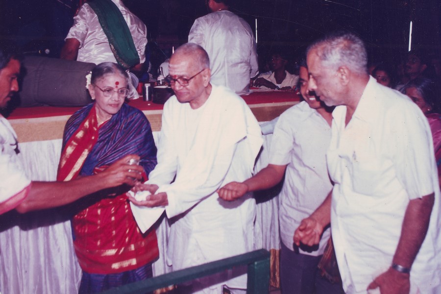 M.S.Subbalakshmi gave her first concert in the Mandali in late 60’s. Narayanaswamy Rao used to visit Sadasivam’s residence every year during the December season and invited her to perform in the forthcoming Ramanavami Celebrations. Concert of Bharata Ratna M.S.Subbalakshmi had become an integral part of Ramanavami Celebrations. Bharata Ratna MSS gave about 33 concerts in Mandali which is the highest she has performed in any sabha. This was because of the bonding between Sri Sadasivam and Sri S V Narayanaswamy Rao. The wavelength of both Rao & Sadasivam matched. Both of them were very religious and spiritual in nature. Sadasivam helped Sri S V Narayanaswamy Rao to invite H.E. R.Venkatraman, the President of India to inaugurate the Golden Jubilee year of the Mandali. If any people requested Sadasivam for M.S.Subbalakshmi’s concert in Bangalore, he would say that please come to Sree Ramaseva Mandali if you want to listen to MS Subbalakshmi. Such was the affection he had for Rao and Mandali. Sadasivam and MS amma visited Rao’s residence many times. After the departure of Sri S V Narayanaswamy Rao an award was instituted in his name by Sri Ramaseva Mandali Trust, the sister organisation of Sree Ramaseva Mandali. The first award was presented to MS Amma to recognize this spiritual relationship between Sri S V Narayanaswamy Rao, Sadasivam & MS Subbalakshmi.
