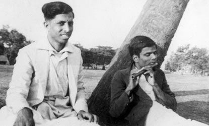T.R.Mahalingam was one of the best flautists in the country. Affectionately called by people as Mali, he revolutionised the style of playing flute in Karnatic Music. Mahalingam was very stubborn and did not care for anyones request. When the then President of India Dr.S.Radhakrishnan requested Mali to pay Bhairavi, he rejected the request and said he did not have mood to play it. However he showed a different attitude towards Mr.Rao. Rao and Mali were very close friends. In late 1950’s someone wrote a telegram to Mali in the name of Narayanaswamy Rao that his tomorrow’s concert at Mandali. Mali thought this was real and had surrendered to drinks. Narayanaswamy Rao came to know about this at around 11 am on the day of Mali’s concert. He immediately arranged a car and went to Chennai and brought Mali along with him. By the time Narayanaswamy Rao and Mali reached Bangalore it was 12 am. After a hot water bath Mali became normal and said to Rao that he would perform on one condition, Narayanaswamy Rao must play the Tambura for him. The concert started at around 1 am in the night and went for a span of 6 hours. 5000 people witnessed this historic concert. This incident amplified the bond between Narayanaswamy Rao and Mali. In 1965, when Mali shifted to Bangalore he stayed in the Malabar lodge that was next to the old Mandali premises and was very near to Narayanaswamy Rao’s #21/1 residence. Mali had a great devotion for Narayanaswamy Rao. Mahaligam & Narayanaswamy Rao visited Kolkata for a concert and the famous photo of Mali & Rao was captured here at the Eden Garden Cricket Playground.