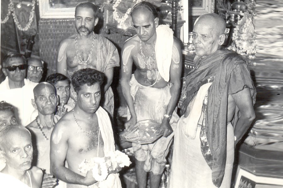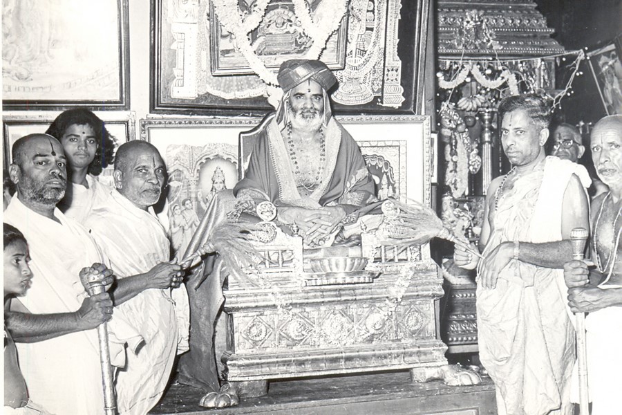 Vidya Prasanna Theertharu of the Purvadhi Rajendra Theertha Samsthana was one of the most dynamic personalities in Madhwa Yathi Parampara. He was a lyricist and has penned hundreds of krithis praising the lord. He was a great scholar and even a great athletic. His Holiness Sri Vidya Prasanna theertha had a great taste of Karnatic Music; this created a strong bonding between him and Sri S V Narayanaswamy Rao. He regularly gave discourses on Ramayana at the Mandali. His Holiness had great affection towards Narayanaswamy Rao and had performed Samsthana Pooja along with Darbar at Narayanaswamy Rao residence in many occasions.