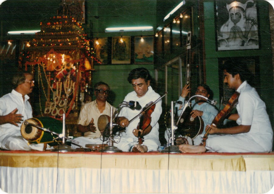 Lalgudi G Jayaraman, Parur M S Gopalakrishnan & Prof T N Krishnan was the greatest violinist known to Karnatic Music and was referred as the Violin Trinity. All the three of these great gems were very close to Narayanaswamy Rao. They have performed solo performances, Jugalbandhi performances and they have also accompanied almost all the artiste of Sri S V Narayanaswamy Rao era. All the 3 of them have offered unconditional service to the lord Rama. In no occasion has these legends rejected any concerts offered by Sri S V Narayanaswamy Rao, if fact they have canceled other concerts to perform in Sree Ramaseva Mandali. Such was their affection towards Narayanaswamy Rao. The Jugalbandhi concert model was popularised in Bangalore thanks to Sri S V Narayanaswamy Rao who arranged Jugalbandhi concerts of the Violin trinity with Hindustani artistes like Amjad Ali Khan, Vishnu Govind Jog, Smt N Rajam to name a few.